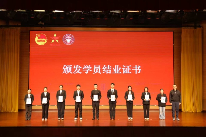 组织部副部长谢鹏华发表讲话。她向全体学员和学生骨干提出四点希望:一是要坚定理想信念,做政治忠诚的明白人;二是要勇担时代重任,做科技报国的排头兵;三是要练就过硬本领,做知行合一的实干者;四是要发扬奋斗精神,做扎根奉献的践行者。她强调,青年学生要“怀爱国之心、立报国之志、增强国之能” ,自觉把个人理想融入党和国家事业之中,在新时代伟大实践中建功立业。