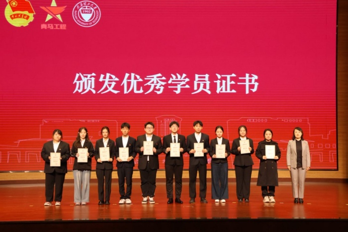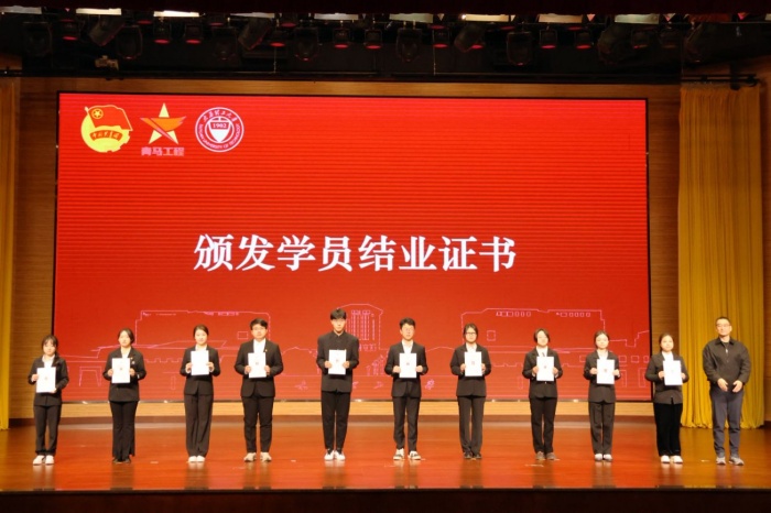 开班仪式上,相关部门负责同志为第23、24期青马学员代表颁发结业证书、优秀学员证书,并聘任新一任领航学长。