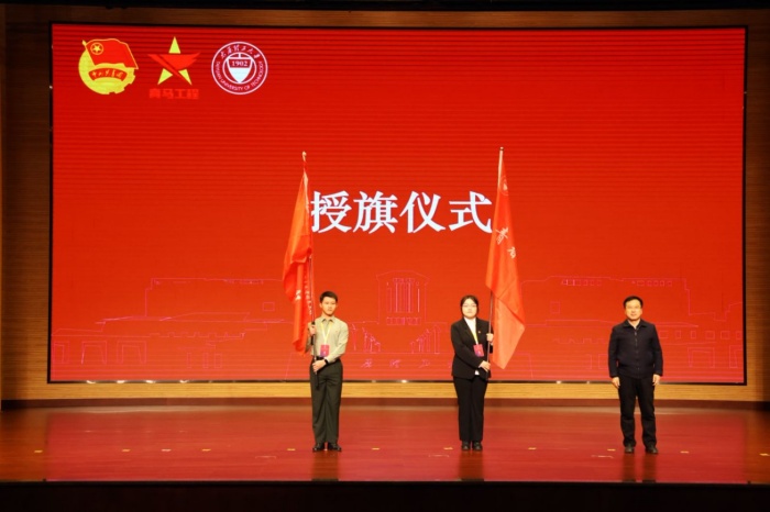 宣传部部长赵国俊为新一期青马工程“高君宇班”“青春宣讲团”授旗。