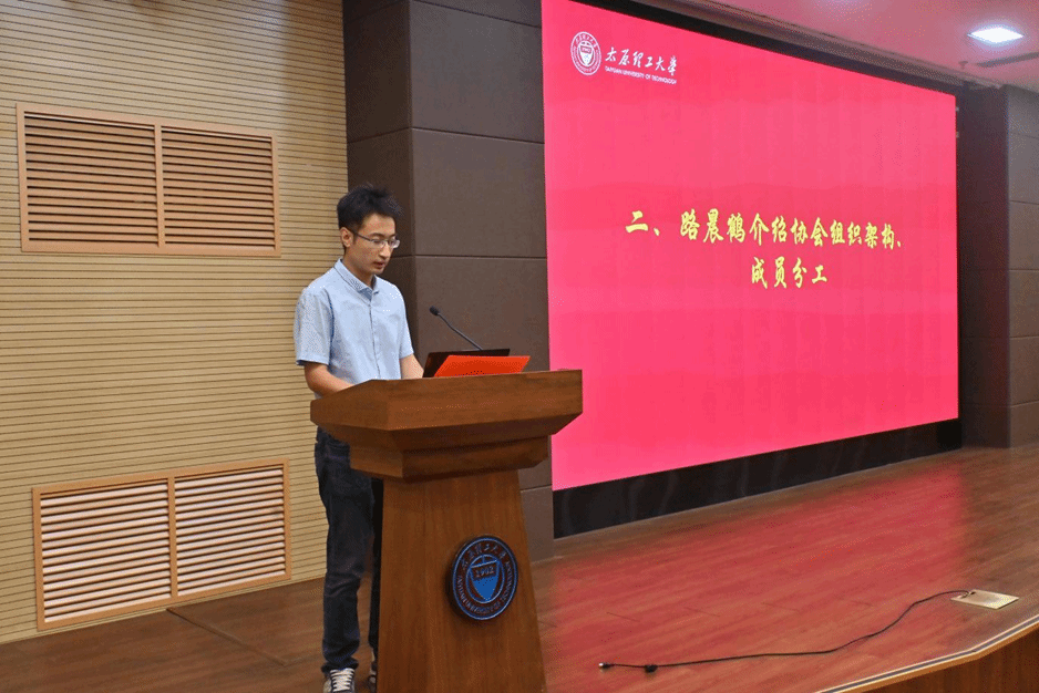 随后,路晨鹤详细介绍协会组织架构、成员分工与工作方向。他指出,协会实行“指导老师-理事会-职能部门-志愿者”四级管理架构,构建校院两级联动机制,志愿者招募与工作落地更高效。明确各部门职责,为协会规范运行、高效开展校友服务工作奠定坚实基础,保障校友服务全覆盖。协会成立是起点,更是责任,志愿者以今天为新起点,同心同向,携手同行,用青春力量搭建母校与校友的连心桥,用志愿担当书写太理青年的新篇章。