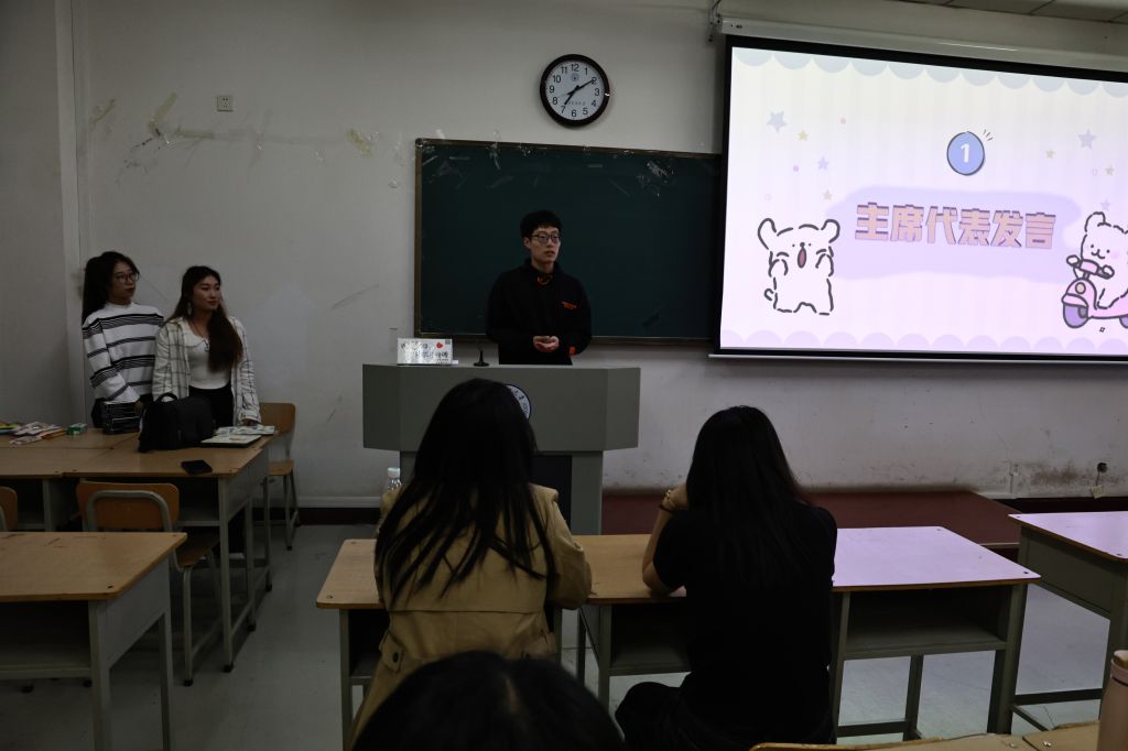 会议由电子信息工程学院研究生会主席团成员侯雅萱和学研部部长霍琪主持。活动伊始,主持人以热情洋溢的开场辞,对各位新成员的加入表示了最热烈的欢迎。随后,研究生会执行主席罗志宇上台发言,分享了在研会工作的收获与感悟,并表达了对新一届成员的殷切期望,希望大家能在研会这个大家庭中收获成长、友谊与快乐,共同为学院同学服务。