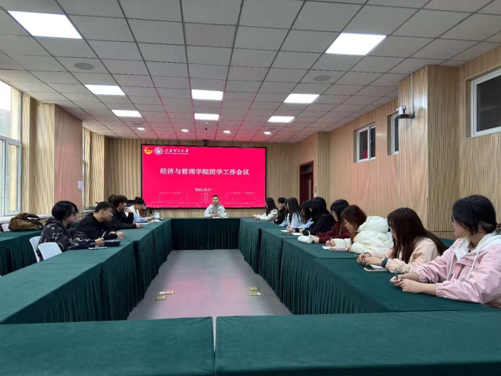 10月17日,经济与管理学院团委于学院229会议室召开工作会议暨团学干部培训会议。会议由团学指导老师吴明泉主持,团委、学生会、研究生会、新媒体中心、萤火志愿者服务队、科协等团学组织骨干参会。