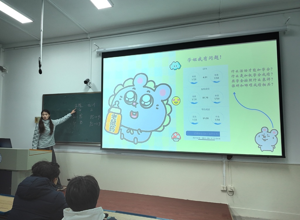 八位学长学姐完成经验分享后,10分钟开展互动答疑,参会学生围绕“专业课与理论课平衡”“大创零基础入门”“保研时间节点把控”等实际问题积极提问,学长学姐结合自身经历逐一耐心解答,现场秩序井然、交流氛围热烈。体育2501班学生黄凌妤说:本次分享内容紧密贴合了我们学习生活与发展的需求,尤其是大创实战经验与四六级备考方法具有极强的实操性,为以后不同发展方向的学生提供了清晰指引。
