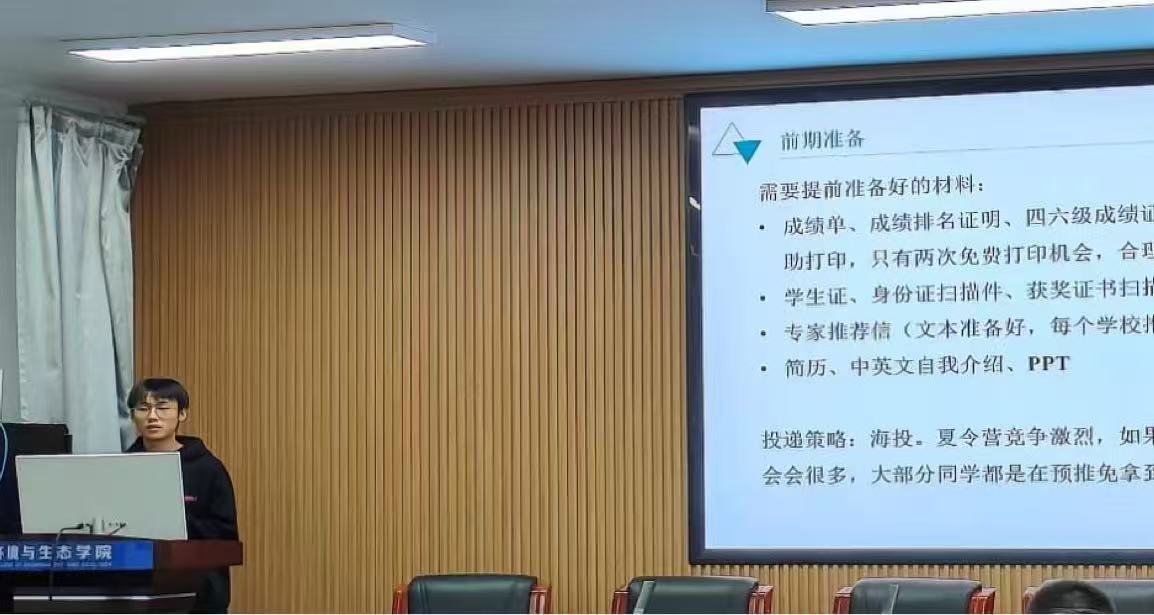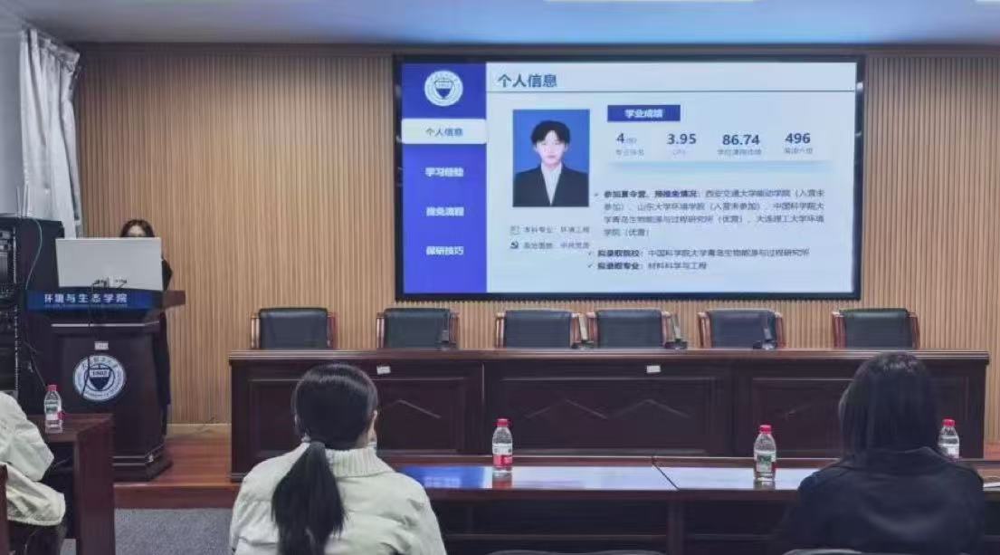 为充分发挥优秀学子示范引领作用,助力学生明晰保研路径、提升核心竞争力,10月18日,环境与生态学院以“青蓝引航·研途共进”为主题,举办本年度保研经验分享会。活动邀请9名成功保研至北京大学、同济大学、天津大学等顶尖院校的2022级本科生,围绕保研准备、夏令营策略、目标院校选择等核心议题展开深度分享,为低年级学生提供全流程指导。