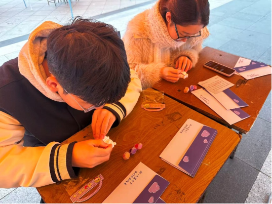 活动现场,负责人也向同学们详细介绍了“蓝信封通信大使”的职责与长期参与方式,鼓励有意向的同学积极报名。很多感兴趣的同学当场完成了报名,并领取了纪念品,在镜头前留下温暖的瞬间。