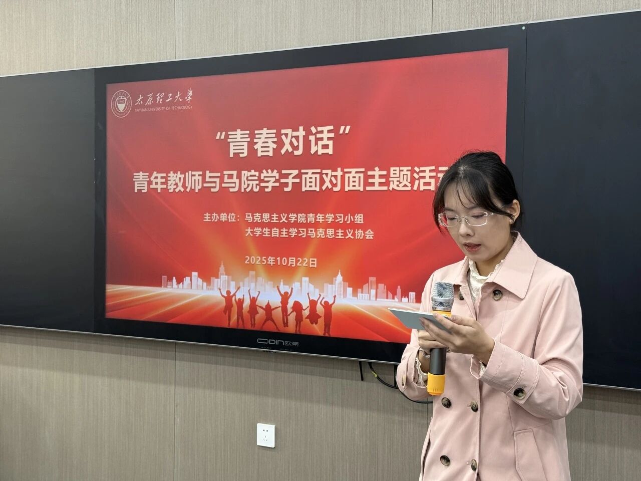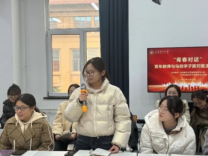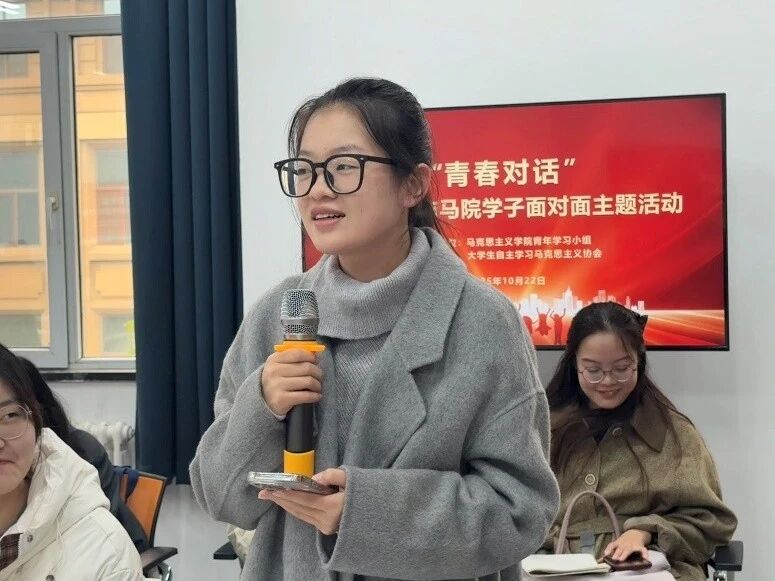 10月22日,大学生自主学习马克思主义协会举办“青春对话”——青年教师与学子面对面主题活动。本次活动特邀邵沁妍、梁寅菁、王青山、周星、李艳、冯帅、高大为等七位优秀青年教师代表与马院学子齐聚一堂,帮助青年大学生夯实马克思主义信仰根基,解答当代大学生学习生活困惑,推动信仰教育与青年大学生成长同频共振、同向同行。