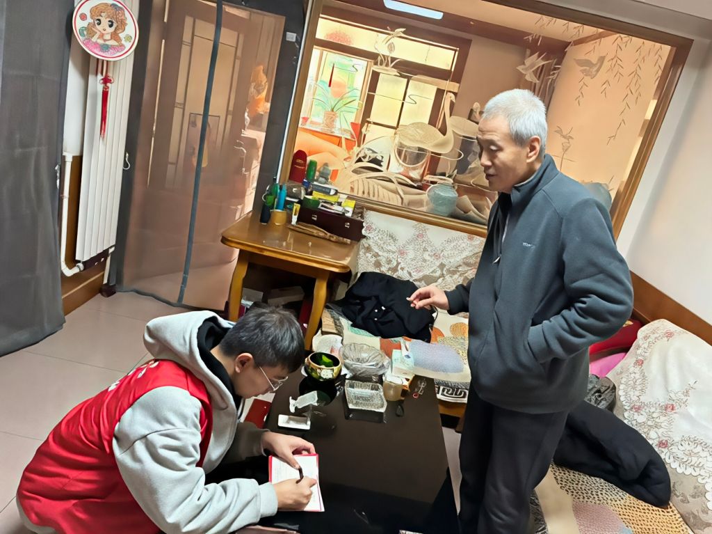 入户过程中,志愿者们严格遵循“礼貌敲门、耐心交流、细致服务”准则,在征得老人同意后有序开展工作。供暖调研环节,小组内分工明确、高效协作:一人手持测温仪,逐一对老人家中客厅、卧室、阳台等区域进行温度测量并详细记录;另一人则坐在老人身边,用亲切的话语询问供暖满意度,认真登记老人的诉求与建议,同时核对更新老人的基础信息。