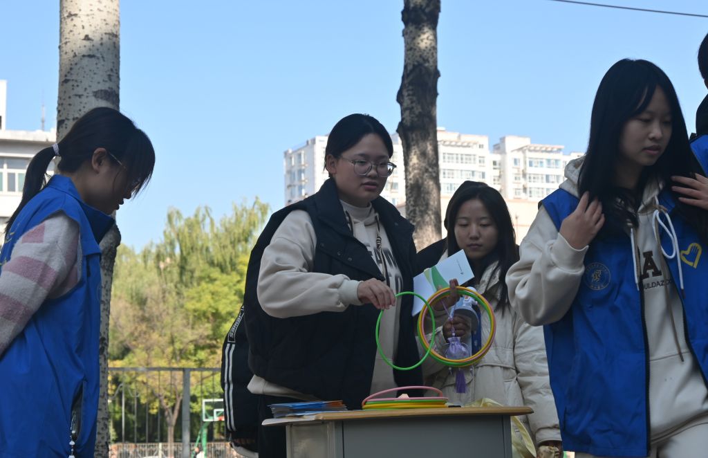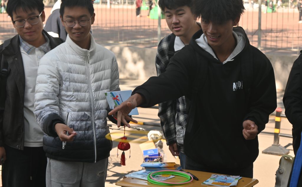 游戏互动区成为活动焦点,三款特色游戏让师生在玩乐中高效学知识。“防艾飞行棋”将传统棋盘格子替换为防艾知识点,四人一组掷骰子前进,触发知识点时需准确作答方可额外进阶;“防艾知识扫雷大作战”直击认知误区,展板上的纸片涵盖常见误区与科学常识,工作人员对翻开“雷区”的师生耐心解读原理,找到正确常识的参与者还能获得明信片、香包等小奖品;“防艾知识大比拼”中,工作人员出题后师生踊跃抢答,先积满5分者获胜,现场抢答声此起彼伏,氛围热烈高涨。同时,参与任意一款游戏即可获得套圈机会,最多可达四次,现场准备的128份胸针、钥匙扣、文创帆布包等奖品,有效调动了师生参与热情。