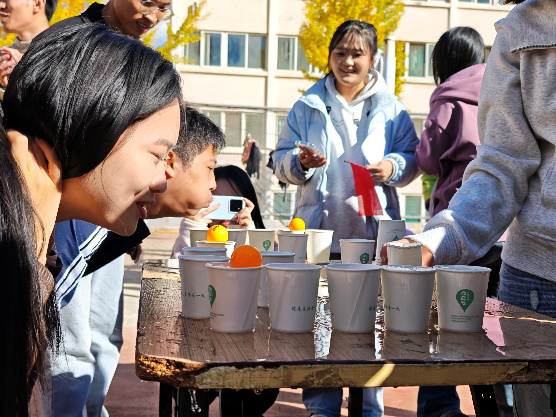 本次运动会设置纸杯传“乒”、呼啦圈传递、绑腿同行、背靠背冲刺四大趣味项目,兼顾趣味性与协作性,24级研究生班级积极组队参赛。作为首个登场的纸杯传“乒”项目,迅速点燃现场气氛。参赛队员需用嘴吹动乒乓球,使其在装满清水的纸杯间依次传递。赛场上,队员们屏气凝神,身体随小球轨迹微微调整,偶尔溅起的水花沾湿衣角,却让围观师生的笑声愈发响亮。