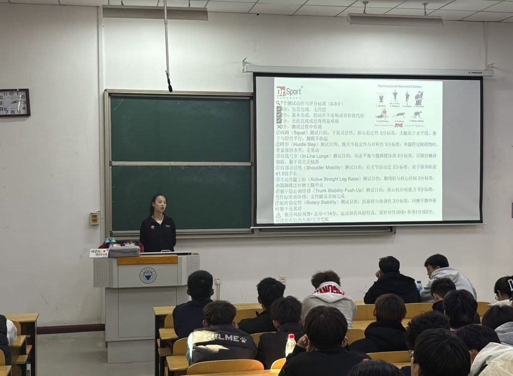 理论授课环节,任凯玲治疗师以“运动损伤防治与康复”为核心主题,系统讲解了运动损伤的发生机制、科学预防策略、现场紧急处理流程及后续康复训练方法。她特别指出,运动损伤的预防需贯穿科学训练规划、合理恢复安排、功能性筛查等多个维度,且损伤的防治与康复过程本身就是劳动技能的实践过程,要求学生以严谨细致的劳动态度对待每一个操作细节。此外,她还针对伤后康复锻炼的阶段性安排、支持带的正确使用技巧、局部与全身协同治疗方法等内容展开详细阐述,知识体系完整、逻辑清晰。