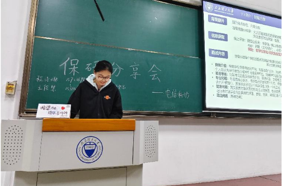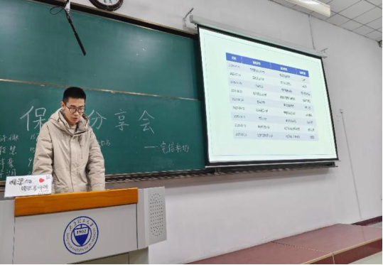 程诗琳总体概述了保研的基础知识,细致讲解了我校推免政策内容,还分享了一些获取信息、学习资源的方法。