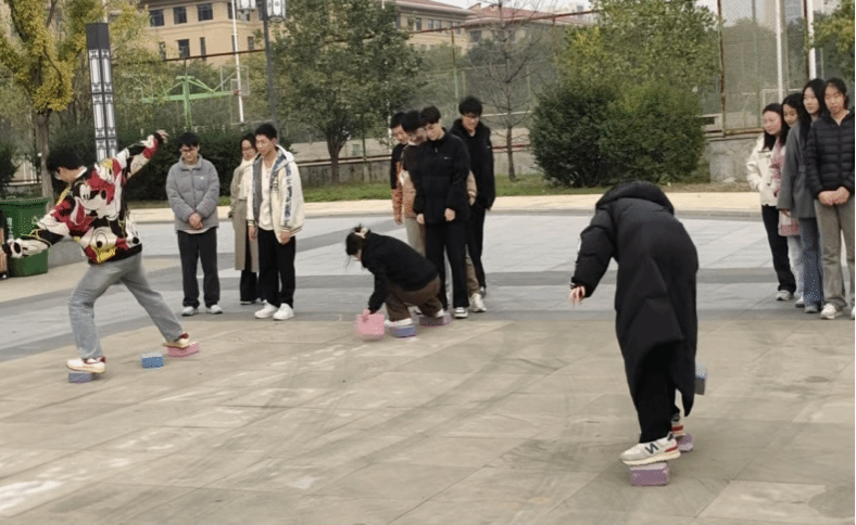 活动开始时,参与同学相互喊着口号调整步伐,未参赛同学在旁加油鼓劲,整个场地充满了团结与热血的氛围。该游戏不仅锻炼了同学的协作能力,更让大家在实践中体会到红军当年攻坚克难的不易,进一步激发了对革命历史的敬畏之心,将红色精神深植于心中。