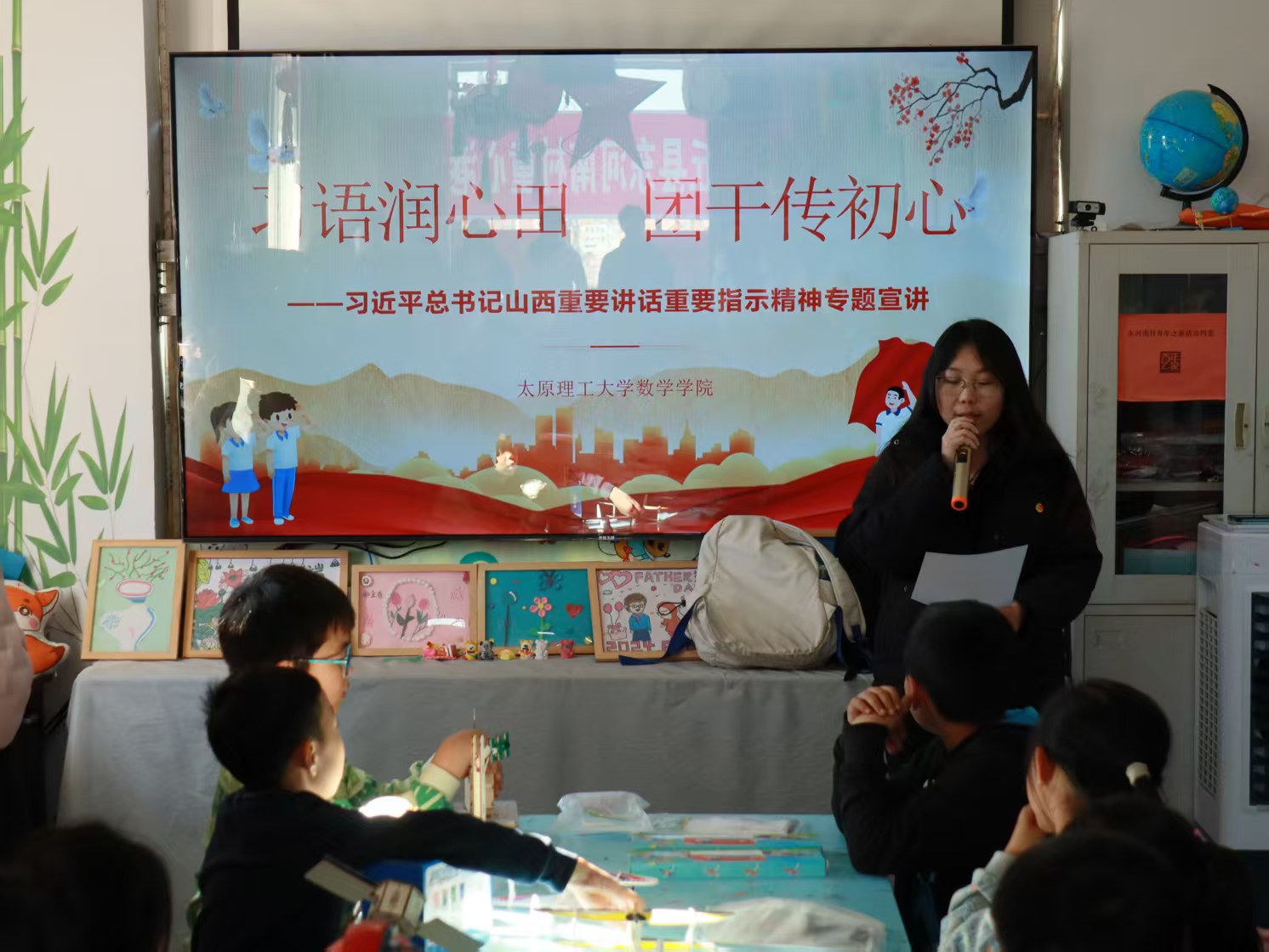 11月2日,为深入学习贯彻习近平总书记系列重要讲话重要指示精神,传承红色基因,厚植爱国情怀,数学学院第三期青马工程“尚德班”学员来到大同市灵丘县东河南村童心港湾,开展“习语润心田,团干传初心”主题团日活动,为乡村孩子们送上一场兼具思想性与趣味性的“红色盛宴”。