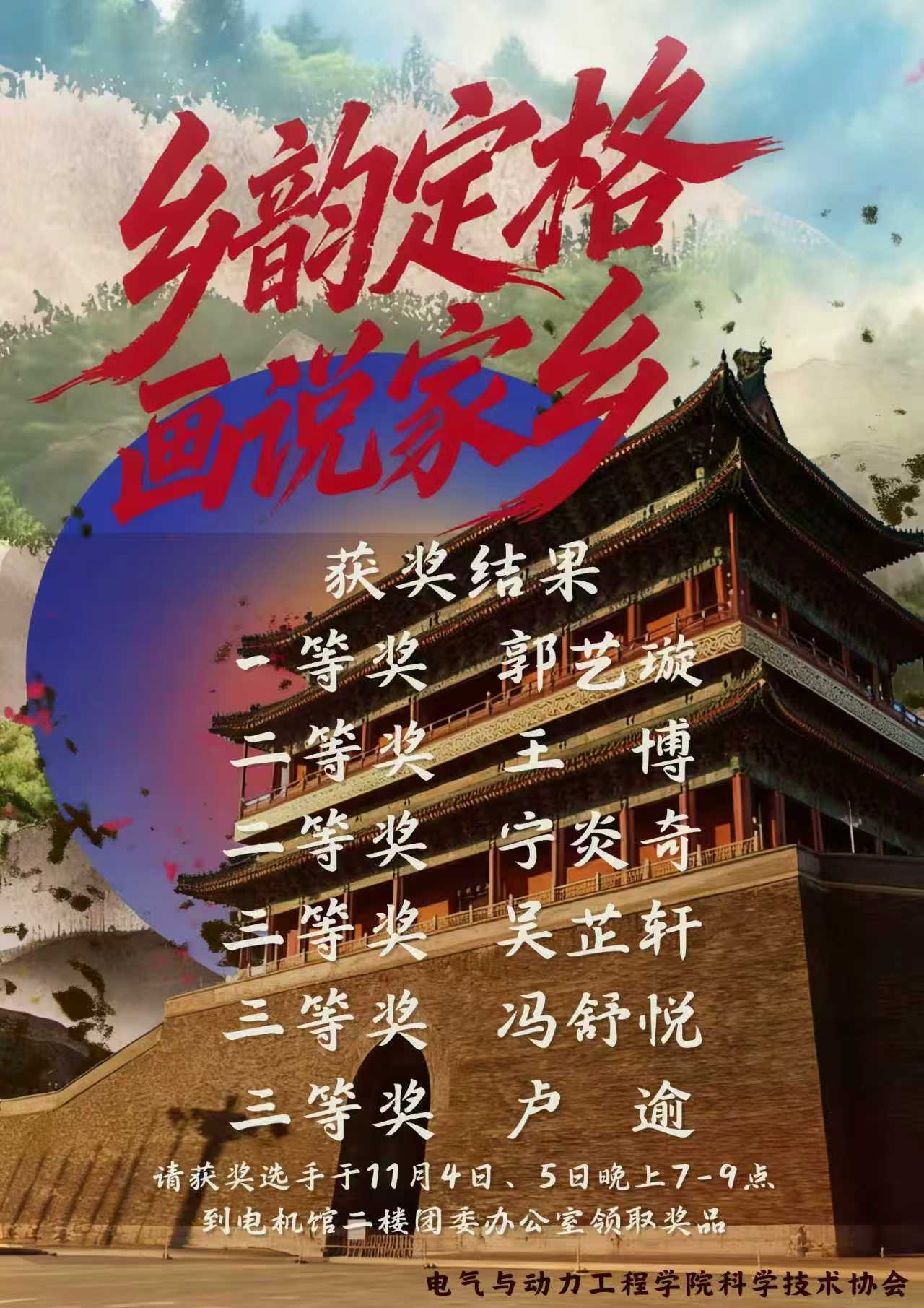 “乡韵定格,话说家乡“海报大赛自启动以来,便承载着同学们对故土的深切眷恋。从老巷的烟火气到田间的风光,从家乡的特色民俗到记忆里的温暖片段,大家用画笔勾勒细节、用色彩传递情感,让一张张海报成为了 “讲述家乡故事”的生动载体。历经作品征集、专业评审等环节,电气与动力工程学院科学技术协会已于 11 月 2 日完成本次大赛的评选工作,大赛圆满落幕。