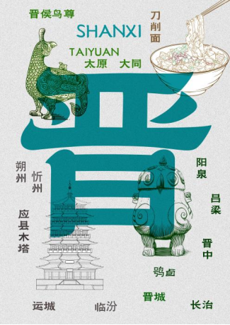 冯舒悦的这张海报以“乡韵定格 话说家乡”为主题,聚焦山西文化:以“晋”字为视觉核心,融入晋侯鸟尊、鸮卣等青铜瑰宝,应县木塔的古建风华,刀削面的烟火滋味,更将太原、大同、运城等城市名散落其间。从文物古韵到舌尖烟火,从建筑脊梁到城市脉络,一笔一划间,织就山西的历史厚度与生活温度,让家乡的文化符号在方寸间鲜活绽放。