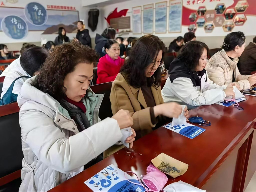 在中药香囊手工制作环节,活动巧妙融入了科技元素。志愿者们首先向居民介绍了菊花、陈皮、艾叶等常见中药材的药性功效与养生原理,并现场演示了如何利用AI工具快速查询和验证相关中医药知识,体现了传统智慧与现代科技的交叉融合。在志愿者协助下,居民们亲手配制药材,制作具有安神、祛湿等功效的中药香囊。该活动不仅锻炼了居民的动手能力,更以趣味科普的方式传播了中医“治未病”的健康理念,增强了社区的文化氛围与凝聚力。