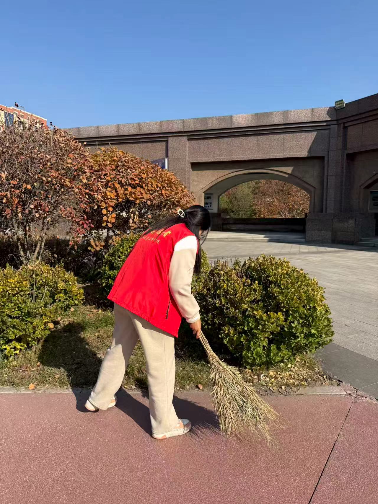 活动当天,志愿者们按既定计划分工协作,开启全方位清洁服务。在公共区域,大家手持笤帚清扫走廊落叶,用抹布细致擦拭窗台、门把手等高频接触部位;在学院办公区,志愿者结合师生实际需求提供定制化服务,协助整理文件资料、擦拭办公设备、修剪绿植枝叶,使办公环境即刻整洁焕新。整个服务过程中,志愿者们相互配合、行动高效、效果显著。