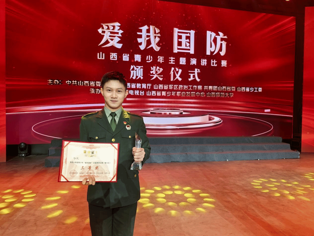 为深入贯彻落实习近平总书记关于加强全民国防教育的重要论述,着力加强青少年国防教育,充分展示我省青少年爱党爱国爱军爱社会主义的精神风貌,11月19日,在山西省青少年“爱我国防”主题演讲比赛中,体育与健康工程学院本科退役大学生、赛马2301班符兴民同学凭借《笃行低姿匍匐,书写爱国忠诚》的深情演讲,斩获青年组三等奖。他以体育人的坚韧意志与退役军人的家国担当,在三晋国防教育舞台上展现了太原理工学子的青春风采。