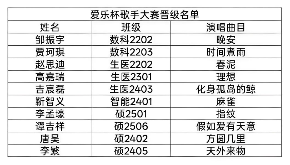为展现学院不同学段青年学子昂扬向上的精神风貌,丰富校园文化生活内涵,搭建专属的自我风采展示舞台,人工智能学院第二届“爱乐杯”歌手大赛初赛火热开唱!来自本科生组与研究生组的学子们齐聚舞台,用嘹亮歌声搭建专属风采秀场,以澎湃旋律点燃冬日青春激情,为校园文化生活注入无限活力!