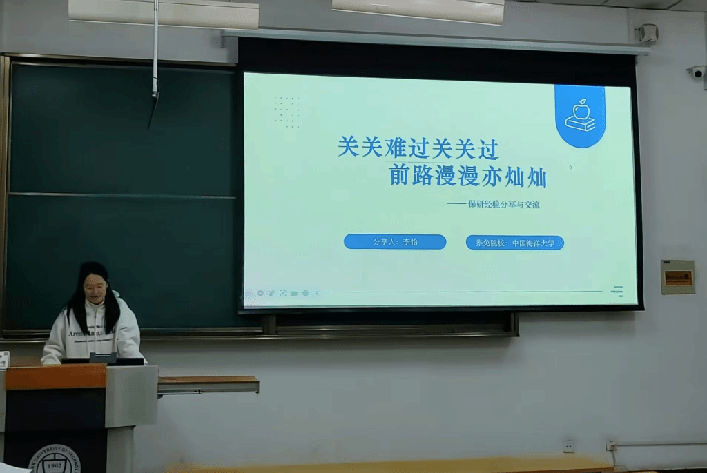 保研至中国海洋大学的李怡聚焦材料筹备与面试实操,系统梳理了面试流程、高频提问知识点及注意事项,让同学们对保研前期准备工作有了全面且深入的认识。
