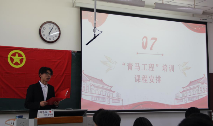 大会第七项议程,“青马工程”负责人白锦源着重从读书会活动和分组学习两个方面介绍了课程安排。其中,读书会采用“集中阅读+研讨+读书分享”的形式开展。