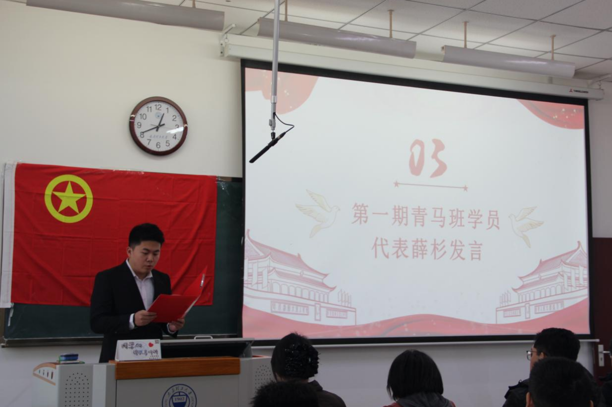 大会第八项,第二期学员代表陶梓璇发言。她向第一期结业学长学姐表示祝贺,强调“接过青马接力棒既是荣誉更是责任”,承诺将以“志”为舵筑牢信仰、以“思”为帆精研理论、以“行”为桨践行担当,倡议全体学员争做素质全面的新时代青年马克思主义者。