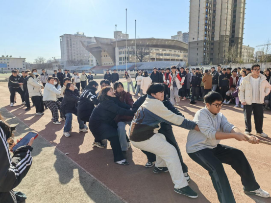 赛场上,粗实的麻绳被双方队员拉得笔直如弦,中间的红色标记带在中线两侧反复游移,每一次轻微的晃动,都紧紧牵动着观赛师生的心弦。“加油!”“奋勇争先!”场边助威声浪此起彼伏,学院师生组成的啦啦队高举旗帜,喊出铿锵有力的口号,为队员们注入不竭动力。参赛队员们咬紧牙关,额间青筋凸显,面颊涨得通红,任凭汗水浸透衣衫,依旧咬紧牙关、寸步不让,倾尽全身气力将绳索向己方方向拉动。