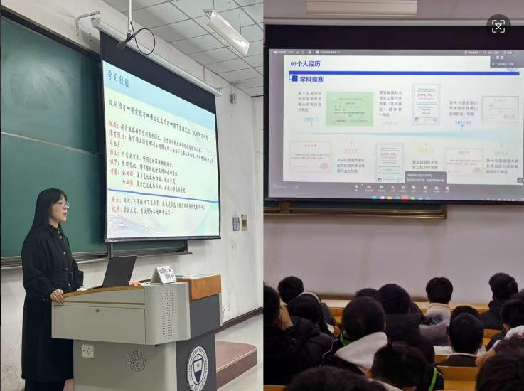 在“学长学姐说专业”环节,国家奖学金获得者裴洋、王显结合个人学习历程与推免心得,聚焦学业规划与成长路径,分享了课程学习、科研项目、竞赛准备等方面的经验与体会。