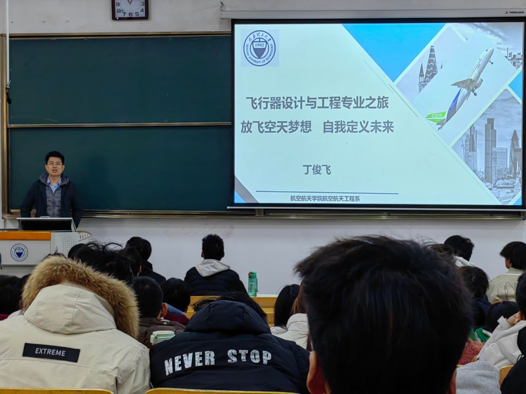 丁俊飞以飞行器发展史为主线,指出该领域技术迭代迅速、机遇广阔,寄语学生把握时代机遇,投身未来航空航天技术的开拓与创新。