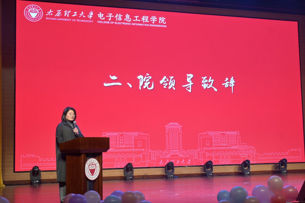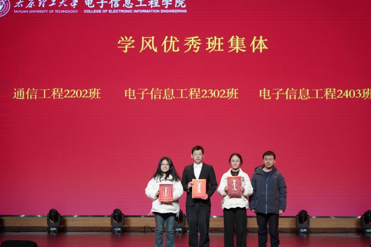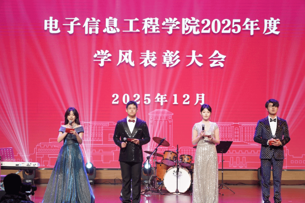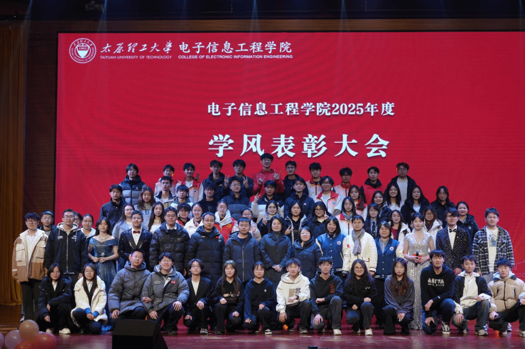 为进一步落实学校学风建设和教育教学评估整改工作要求,充分调动师生学习工作的积极性,12月5日晚,电子信息工程学院在学生活动中心报告厅举行2025年度学风表彰晚会。学院党委书记朱晋华、党委副书记邓雅媛、副院长靳宝全、电子信息系主任张博及全体辅导员出席本次大会,全院师生齐聚一堂,以表彰致敬优秀,以文艺点亮青春,共同书写学风建设的崭新篇章。