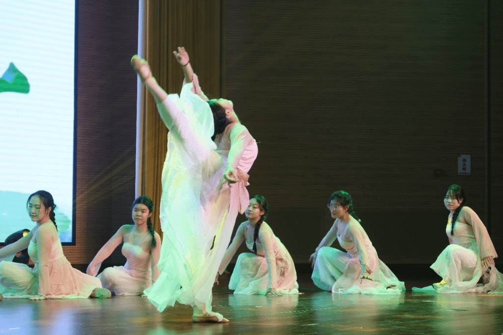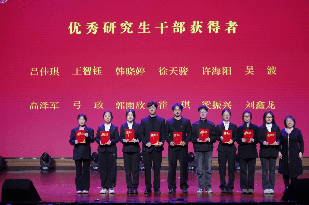 “学路奋进·绽芳华”篇章温情又热烈,为现场注入满满正能量。梁馨月等同学带来的歌曲表演《浮光》,旋律温柔又充满力量;叶逸帆等同学用轻盈舞步勾勒舞蹈《采莲》,舞步轻盈、意境雅致。紧接着,由邓雅媛为“优秀研究生”“优秀研究生干部”“三好学生”“优秀学生干部”颁奖,见证了一批批奋进学子的成长与收获。抽奖环节再次登场,惊喜持续加码,让现场氛围持续升温。