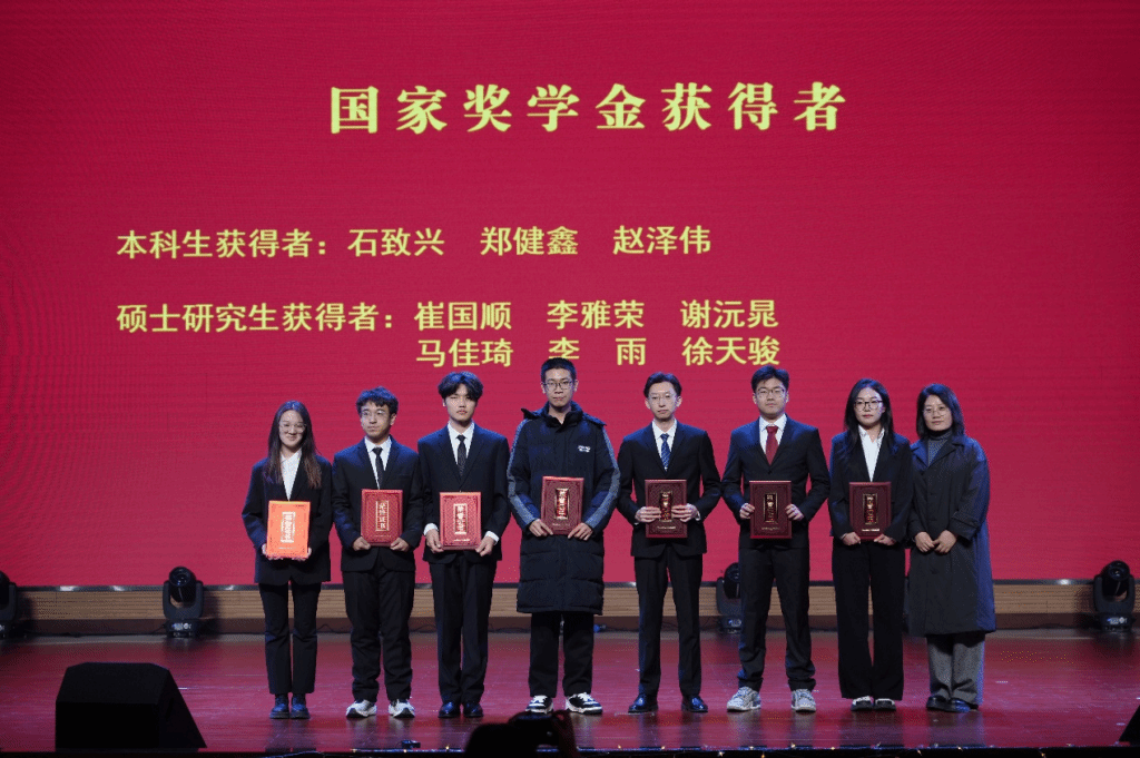在热烈的掌声中,朱晋华为我院荣获“国家奖学金”的同学颁发荣誉证书。书记对获奖同学在学业科研、实践创新中的突出表现给予高度肯定,鼓励大家以荣誉为新起点,在青春赛道上书写属于新时代青年的奋进篇章!