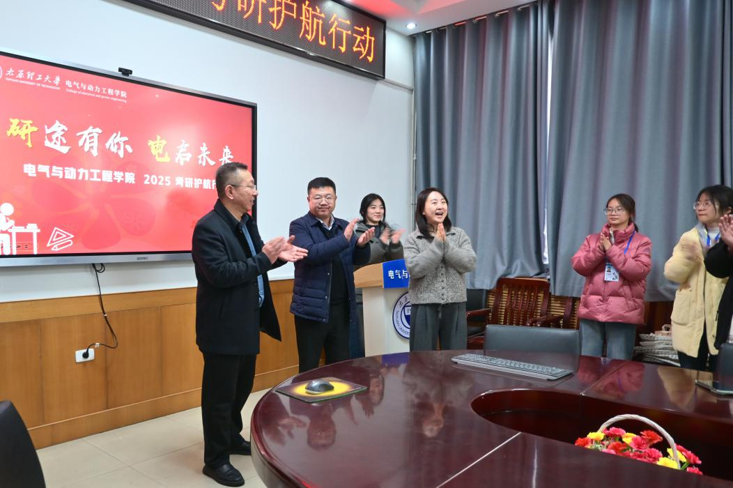 岁末临考,研途逐光。为助力 2025 届考研学子冲刺攻坚的关键阶段,将学院的深切关怀与热忱鼓励精准传递至每一位追梦人,电气与动力工程学院近日温情启幕 “研途有你 电启未来” 考研护航行动。学院党委书记徐鑫、党委副书记郭春耀、学工办主任王婷婷,各年级辅导员(含大四辅导员)与各班考研代表、学弟学妹代表及团学组织成员齐聚一堂,以陪伴为翼,为即将奔赴考场的大四考研学子加油鼓劲,共赴逐梦之约。