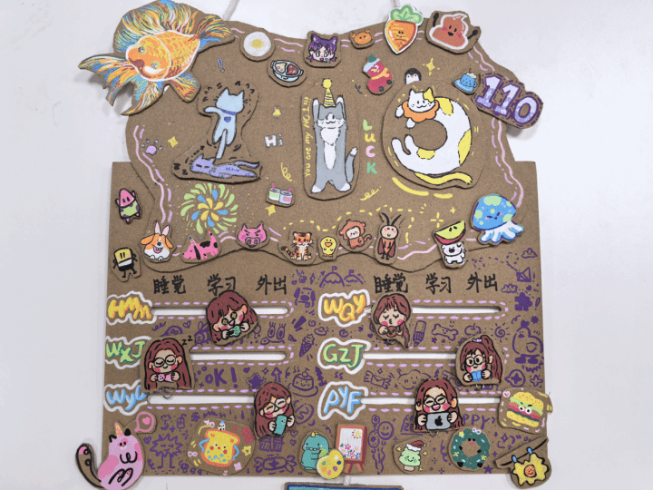 自活动启动以来,各宿舍积极响应、同心协力,一场“创意比拼”在材料学院学子中热烈展开。同学们充分发挥想象力与创造力,将审美灵感融入门牌创作的每一个细节:有的宿舍以萌趣卡通为主题,用灵动线条勾勒室友间的欢乐日常,憨态可掬的形象让人眼前一亮;有的宿舍偏爱温情叙事,将车票、照片、树叶等生活碎片精心拼贴,串联起同窗并肩成长的温暖时光,每一处细节都承载着专属记忆;有的宿舍挥洒笔墨,以苍劲有力的书法写下青春宣言或宿舍口号,在笔墨流转间尽显青年学子的理想与担当;还有的宿舍结合专业特色,将材料元素、科研符号巧妙融入设计,让门牌兼具创意与学科辨识度。每一件作品都独具匠心、各有千秋,既是宿舍文化的独特缩影,更是材院学子审美素养、创新能力与团队智慧的生动展现,小小的门牌成为了承载青春记忆、彰显集体个性的文化名片。