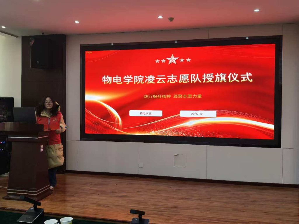 为进一步弘扬“奉献、友爱、互助、进步”的志愿服务精神,推动物理与光电工程学院志愿服务事业高质量发展,12月11日,物理与光电工程学院凌云志愿队授旗仪式在物电南楼304顺利落下帷幕。