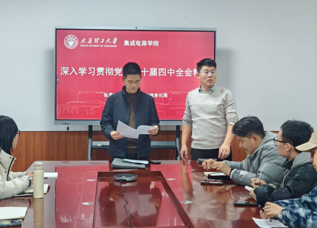 为深入学习贯彻党的二十届四中全会精神,切实提升青年大学生的综合素养,12月16日晚,集成电路学院在物电北楼506会议室召开党的二十届四中全会精神学习会。张虎林教授领学,学院全体学生干部及青马班成员参加。