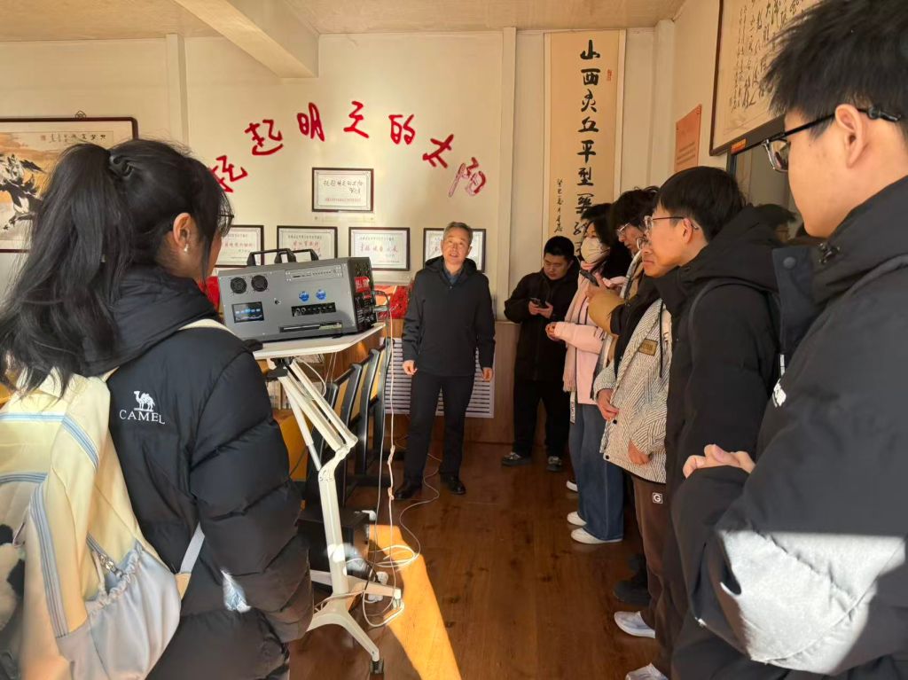 调研团队走进平型关红军小学,在赵国普的带领下开启了一段浸润红色基因的探访之旅。校园内,习近平题写的“托起明天的太阳”题词熠熠生辉,不仅彰显着国家对乡村教育的重视,更成为激励全校师生奋进的精神旗帜。同学们重点参观了红色影片放映室,当得知室内的放映机是习近平总书记的母亲齐心奶奶捐赠时,大家纷纷驻足凝视,深切体会到老革命家对乡村教育事业的深情牵挂与大力支持。