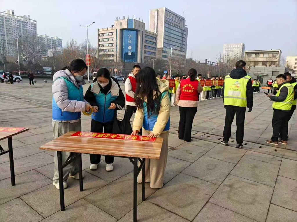 3月5日上午,晋中市“3.5学雷锋”志愿服务启动仪式在榆次区工人文化宫北广场隆重举行。数学学院选派7名优秀志愿者代表,联合晋中新青年高校志愿者队伍,共同参与了此次市级大型志愿服务活动。活动现场,志愿者们积极配合晋中市各部门及社区,开展学雷锋宣传与便民服务,以饱满的热情和专业的态度,向市民传递温暖与正能量,充分展现了数学学院学子的良好风貌,为“怡然见晋中”城市品牌建设注入了青春力量。