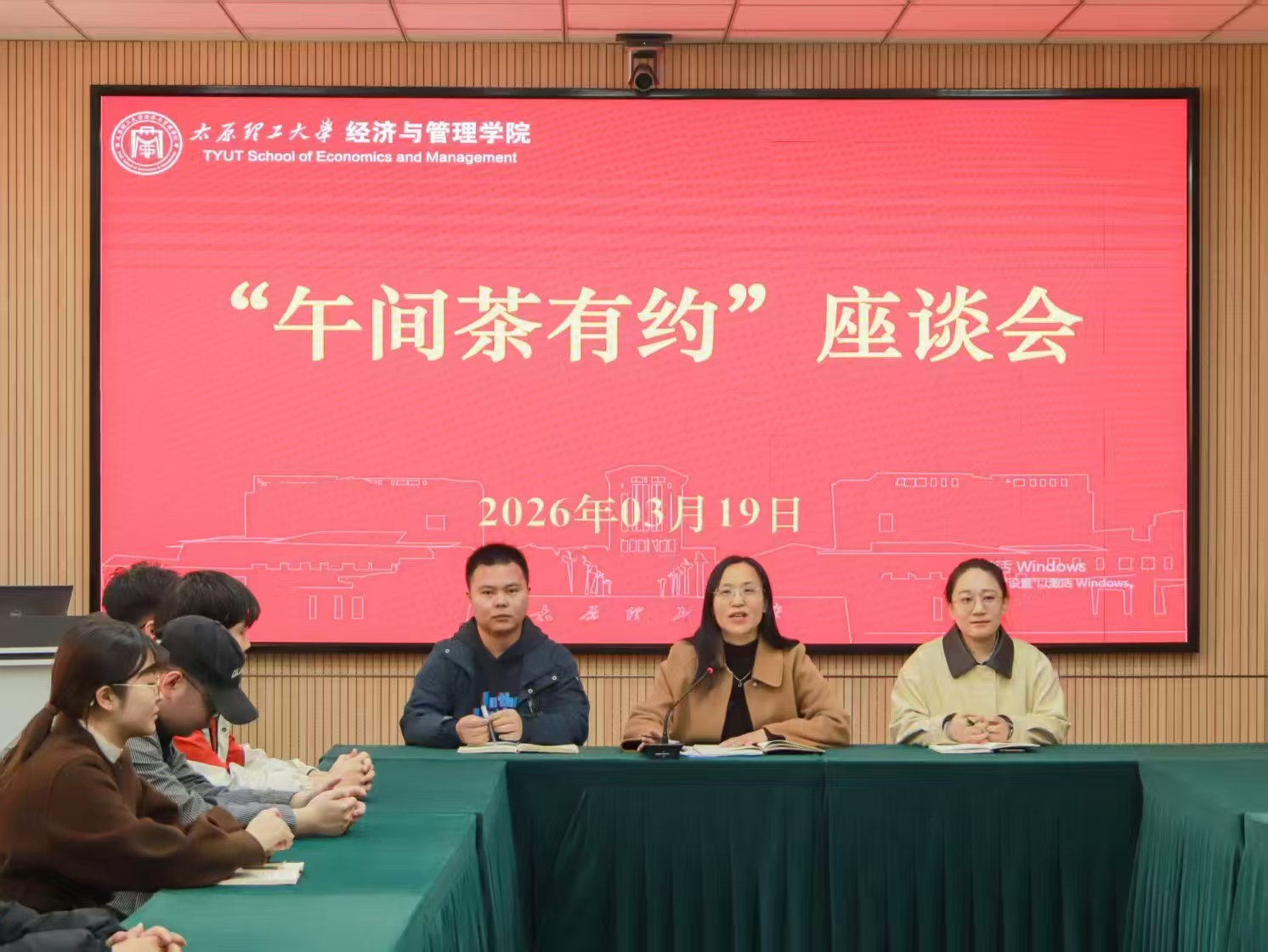 3月19日中午,经济与管理学院“午间茶有约”专题座谈会在学院229会议室如期举行。学院党委书记闫新、学工办副主任张志卿、青年教师代表郭松波及辅导员吴明泉,与本硕博各年级学生代表围坐一堂,以“师生连接、服务同学”为宗旨,聚焦校园生活、学业深造、毕业就业等核心议题,面对面倾听学子心声、现场破解实际难题、共商成长发展路径,现场氛围坦诚热烈、务实走心。