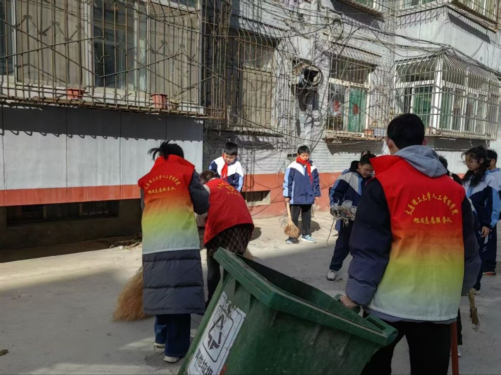 活动当天,大学生志愿者与小学生代表组成志愿服务小分队,分工协作、密切配合,对社区公共区域、主要道路及卫生死角进行了集中清理。大家手持铁锹、扫帚、簸箕等工具,认真清扫路面垃圾、清理绿化带杂物,做到清理一处、整洁一处。活动中,大学生志愿者积极发挥带动作用,耐心引导小学生掌握劳动技能,讲解垃圾分类知识,传递文明理念。小学生们也在实践中增强了劳动意识和环保观念,展现出良好的精神风貌。