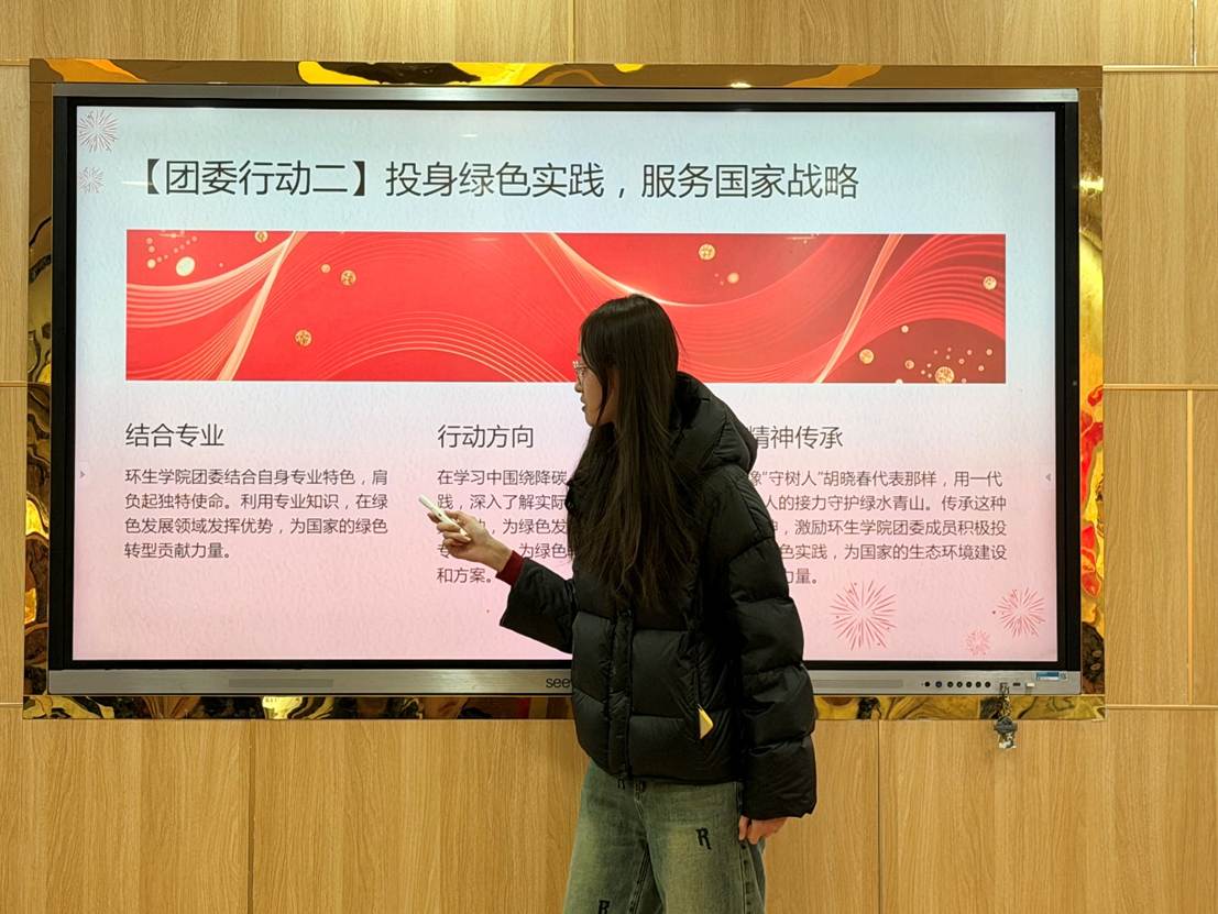 青年使命板块,学习内容围绕共青团如何贯彻落实两会精神展开,明确了团中央的核心任务与工作要求。结合环境与生态学院专业特色,团委明确了三大行动方向:强化思想引领,通过专题学习会、主题团日、海报解读等形式,让两会精神入脑入心,筑牢团员青年信仰之基;投身绿色实践,围绕降碳、减污开展调研与志愿服务,将专业知识与国家绿色发展战略相结合,以青年智慧守护绿水青山;服务青年成长,用好“青年之家”阵地,回应青年教育、就业、心理健康等关切,多办可感可及的实事,凝聚青年奋进力量。