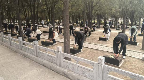 苍松翠柏掩映下的太原双塔烈士陵园庄严肃穆。下午时分,师生们整齐列队于烈士纪念碑前,神情庄重,心怀敬仰。伴随着低沉而庄严的音乐,师生们向革命烈士默哀致敬,深切悼念为民族独立和人民解放事业英勇献身的革命先烈。随后师生们向烈士献花,表达对革命先辈的崇高敬意和无限追思。