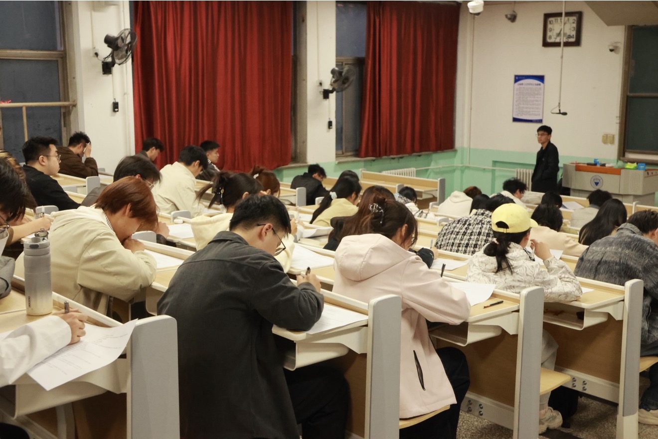 考试现场秩序井然、氛围严肃庄重,监考人员严格恪守考试流程,认真履行监考职责,全程严守监考准则,细致做好考场监督工作,全力保障考试的公平、公正、有序开展。参赛团干部自觉遵守考场纪律,沉着冷静、专注答题、奋笔疾书,以严谨认真的学习态度、求真务实的作风投入考试。